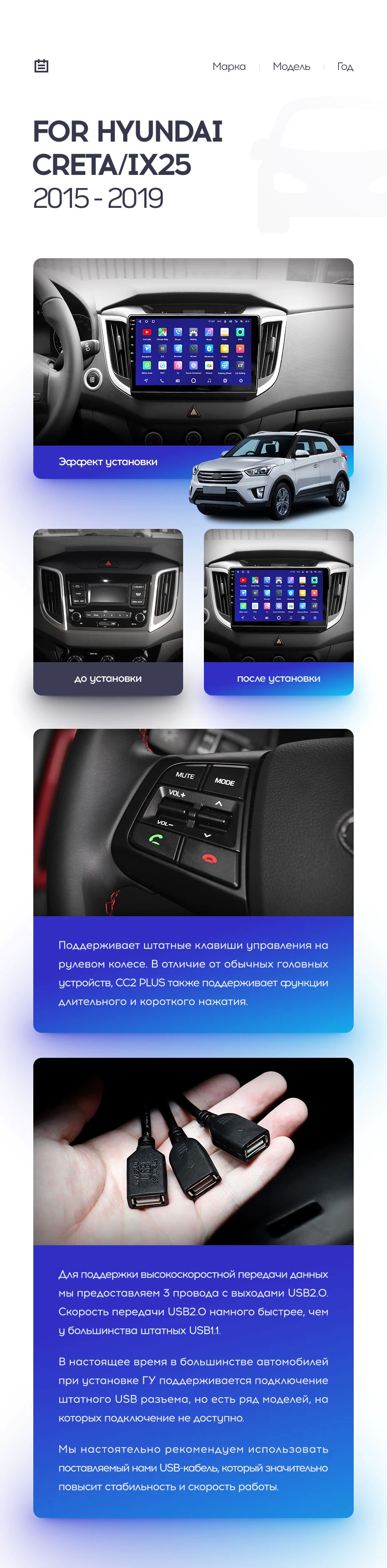 Штатная магнитола Teyes CC2 Plus 4/32 Hyundai Creta (2015-2020) - купить всего за 33 500 руб. в интернет-магазине в Шахтах Teyes.com.ru. ✓ Самый лучший выбор мультимедиа ✓ Лучшая замена штатному ГУ ✓ Тел. +7 (800) 775-31-74
