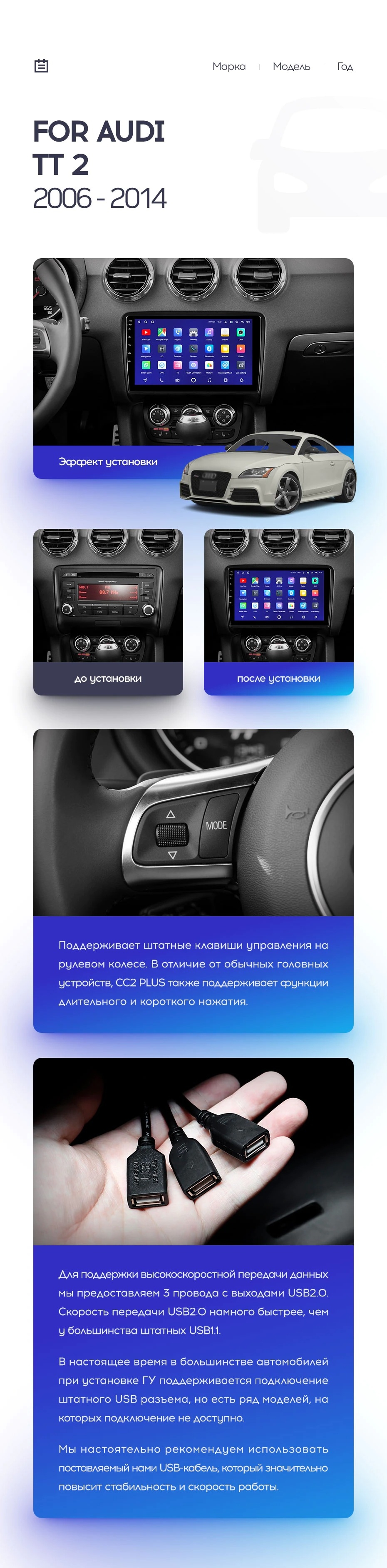 Штатная магнитола Teyes CC3 2K 4/32 Audi TT 2 (2006-2014) (13") - купить всего за 42 500 руб. в интернет-магазине в Шахтах Teyes.com.ru. ✓ Самый лучший выбор мультимедиа ✓ Лучшая замена штатному ГУ ✓ Тел. +7 (800) 775-31-74