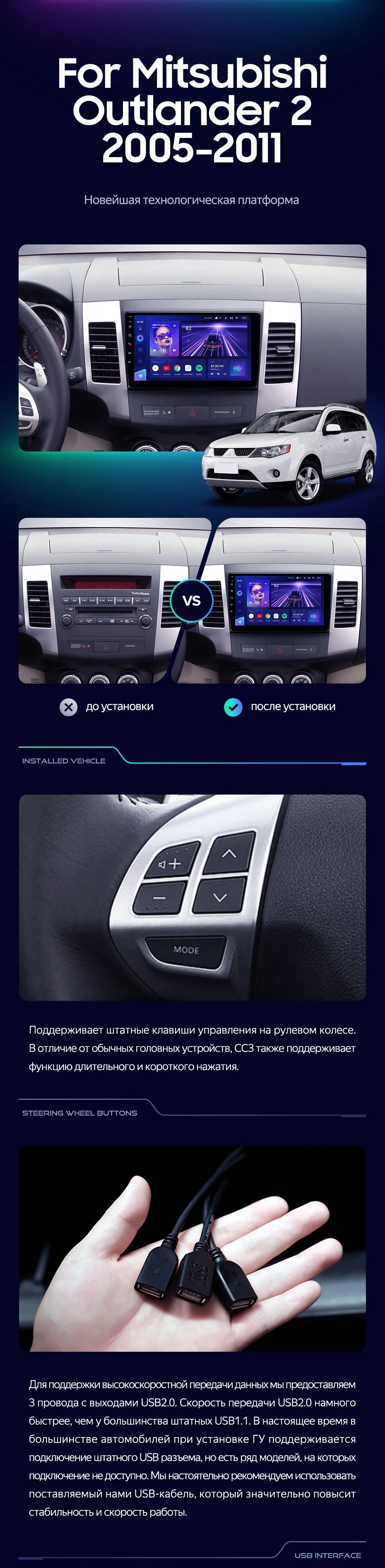 Штатная магнитола Teyes CC3 2K 4/64 Mitsubishi Outlander 2 (2005-2011) Тип-B - купить всего за 45 440 руб. в интернет-магазине в Шахтах Teyes.com.ru. ✓ Самый лучший выбор мультимедиа ✓ Лучшая замена штатному ГУ ✓ Тел. +7 (800) 775-31-74