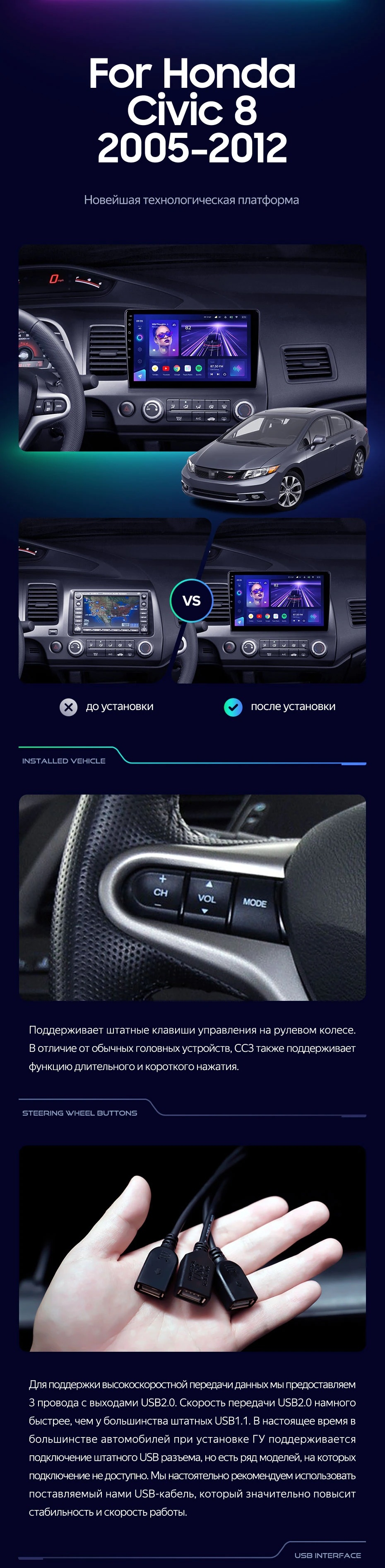 Штатная магнитола Teyes CC3 4/32 Honda Civic Hatchback (2006-2012) - купить всего за 35 970 руб. в интернет-магазине в Шахтах Teyes.com.ru. ✓ Самый лучший выбор мультимедиа ✓ Лучшая замена штатному ГУ ✓ Тел. +7 (800) 775-31-74