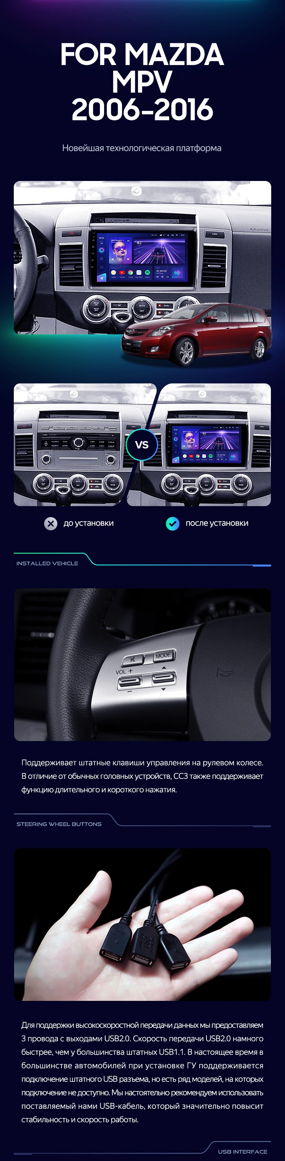 Штатная магнитола Teyes CC3 4/32 Mazda MPV LY (2006-2016) - купить всего за 34 230 руб. в интернет-магазине в Шахтах Teyes.com.ru. ✓ Самый лучший выбор мультимедиа ✓ Лучшая замена штатному ГУ ✓ Тел. +7 (800) 775-31-74