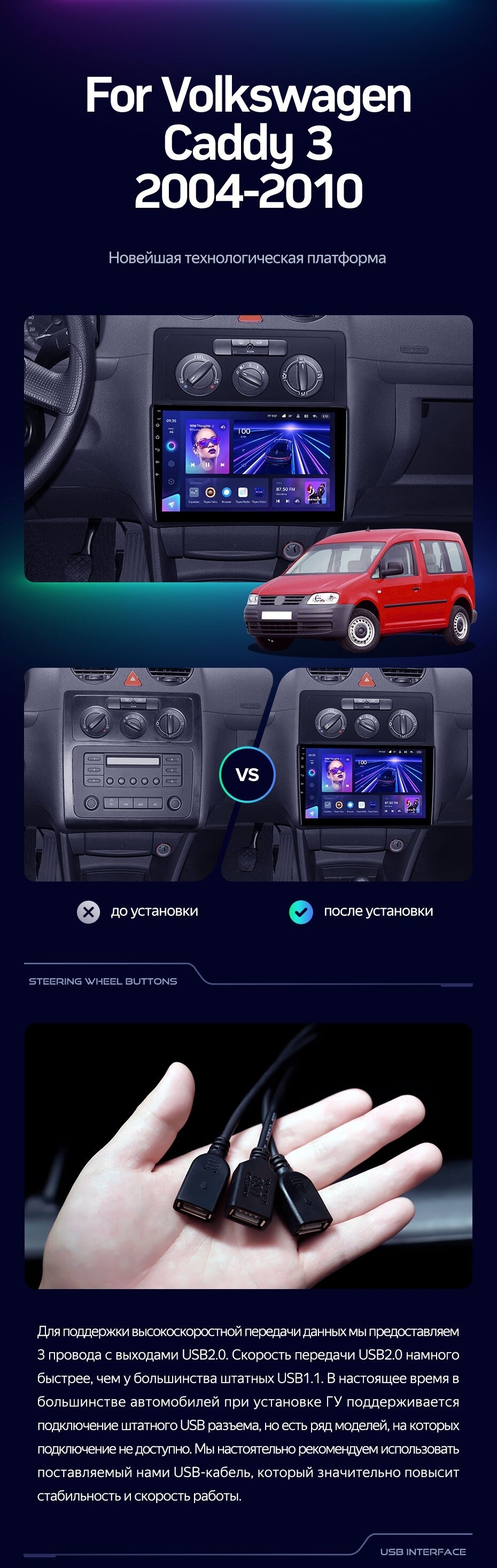 Штатная магнитола Teyes CC3 4/32 Volkswagen Caddy 2K (2004-2010) - купить всего за 34 300 руб. в интернет-магазине в Шахтах Teyes.com.ru. ✓ Самый лучший выбор мультимедиа ✓ Лучшая замена штатному ГУ ✓ Тел. +7 (800) 775-31-74