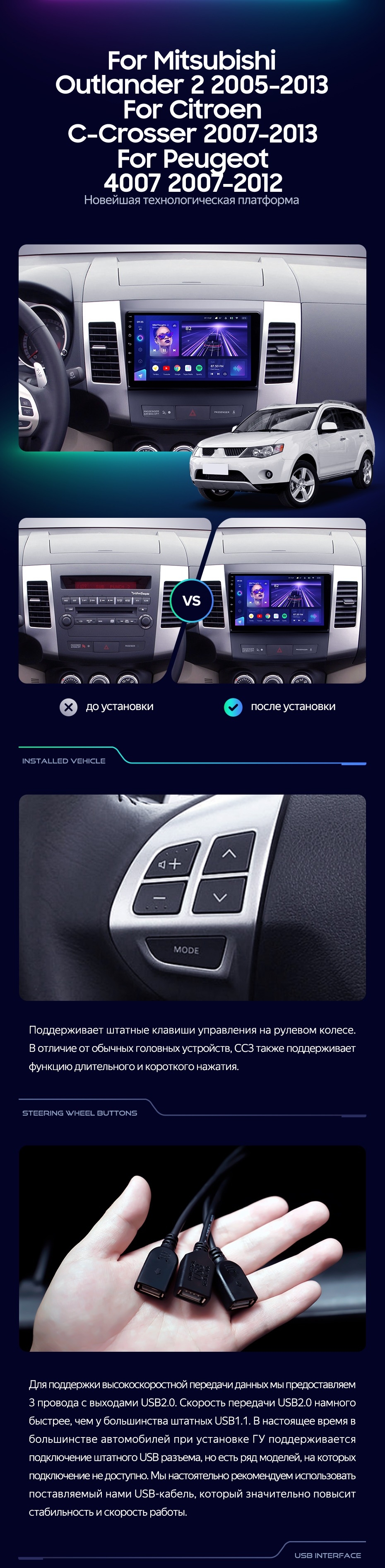 Штатная магнитола Teyes CC3L 4/32 Mitsubishi Outlander 2 (2005-2011) Тип-B - купить всего за 28 600 руб. в интернет-магазине в Шахтах Teyes.com.ru. ✓ Самый лучший выбор мультимедиа ✓ Лучшая замена штатному ГУ ✓ Тел. +7 (800) 775-31-74