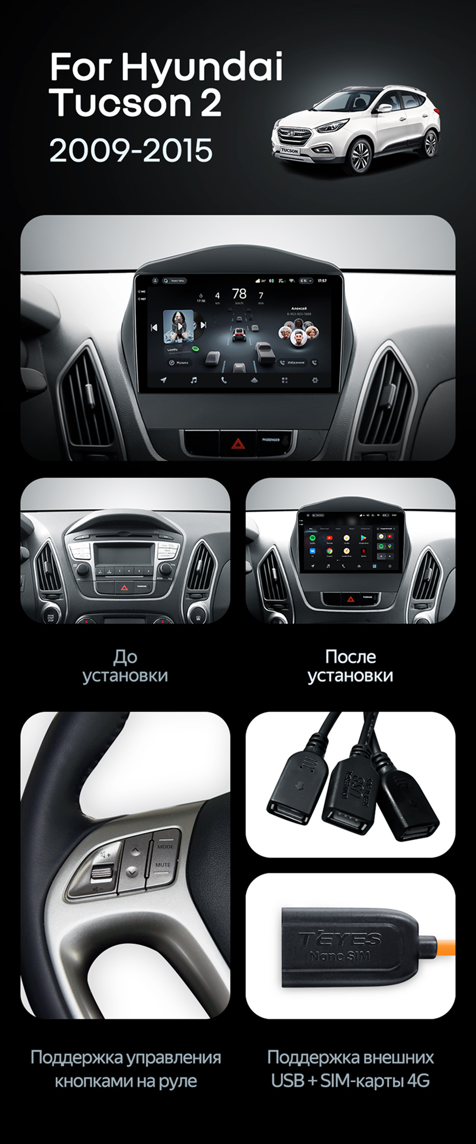 Штатная магнитола Teyes CC4 6/64 Hyundai ix35 (2009-2015) (Tucson 2) Тип-C - купить всего за 44 690 руб. в интернет-магазине в Шахтах Teyes.com.ru. ✓ Самый лучший выбор мультимедиа ✓ Лучшая замена штатному ГУ ✓ Тел. +7 (800) 775-31-74