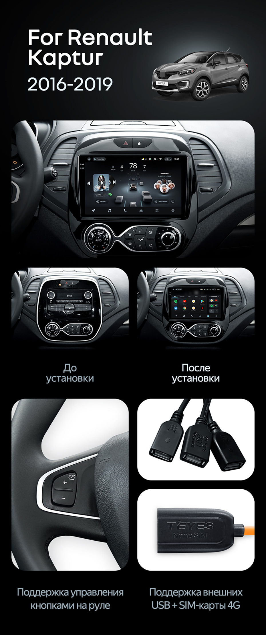 Штатная магнитола Teyes CC4 6/64 Renault Kaptur (2016-2019) F2 - купить всего за 44 420 руб. в интернет-магазине в Шахтах Teyes.com.ru. ✓ Самый лучший выбор мультимедиа ✓ Лучшая замена штатному ГУ ✓ Тел. +7 (800) 775-31-74