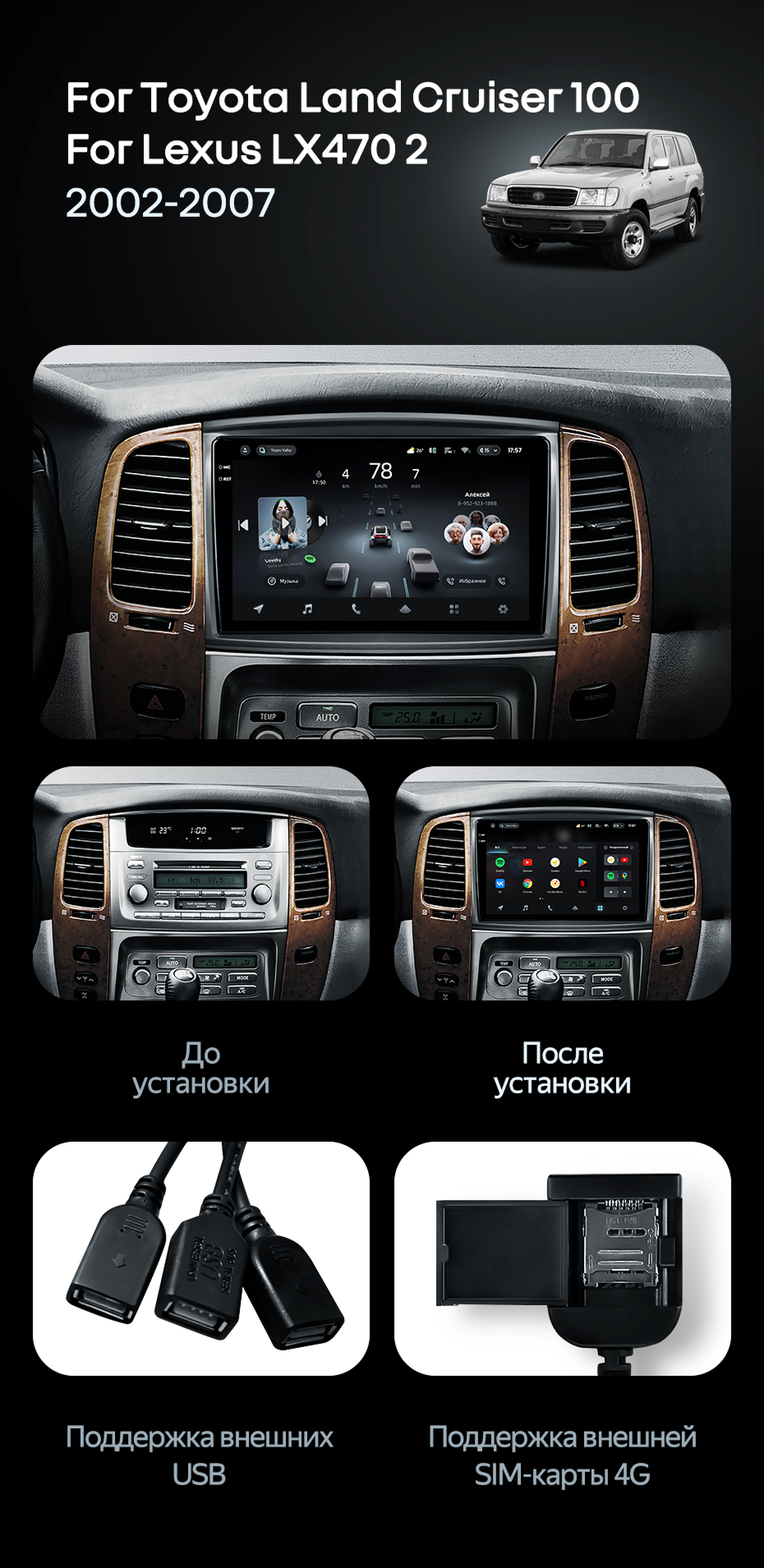 Штатная магнитола Teyes CC4 8/128 Lexus LX470 J100 2 (2002-2007) Тип-C - купить всего за 55 500 руб. в интернет-магазине в Шахтах Teyes.com.ru. ✓ Самый лучший выбор мультимедиа ✓ Лучшая замена штатному ГУ ✓ Тел. +7 (800) 775-31-74