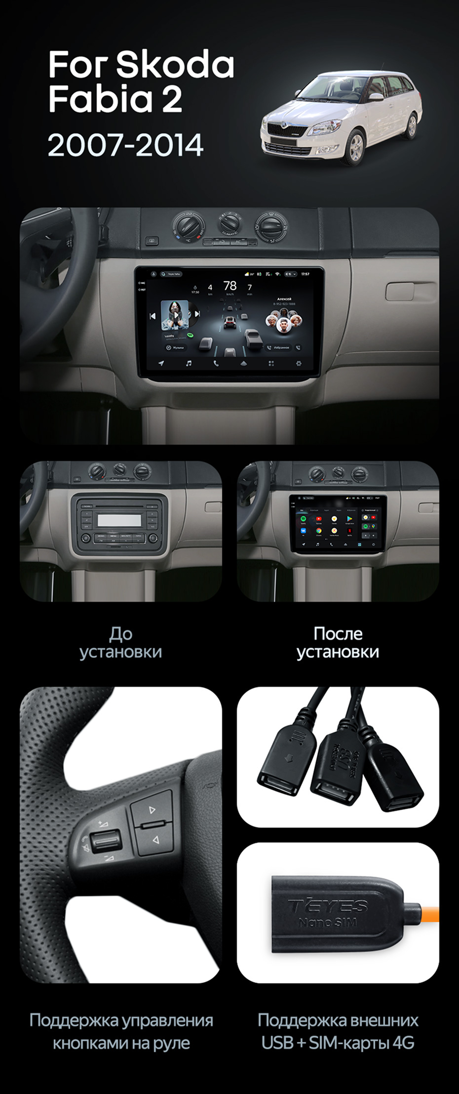 Штатная магнитола Teyes CC4 8/128 Skoda Fabia 2 (2007-2014) - купить всего за 53 000 руб. в интернет-магазине в Шахтах Teyes.com.ru. ✓ Самый лучший выбор мультимедиа ✓ Лучшая замена штатному ГУ ✓ Тел. +7 (800) 775-31-74