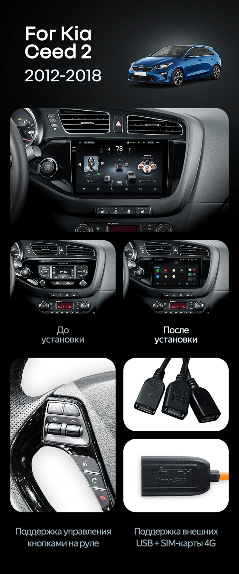 Штатная магнитола Teyes CC4 Pro 12/256 Kia Ceed 2 JD (2012-2018) - купить всего за 70 000 руб. в интернет-магазине в Шахтах Teyes.com.ru. ✓ Самый лучший выбор мультимедиа ✓ Лучшая замена штатному ГУ ✓ Тел. +7 (800) 775-31-74