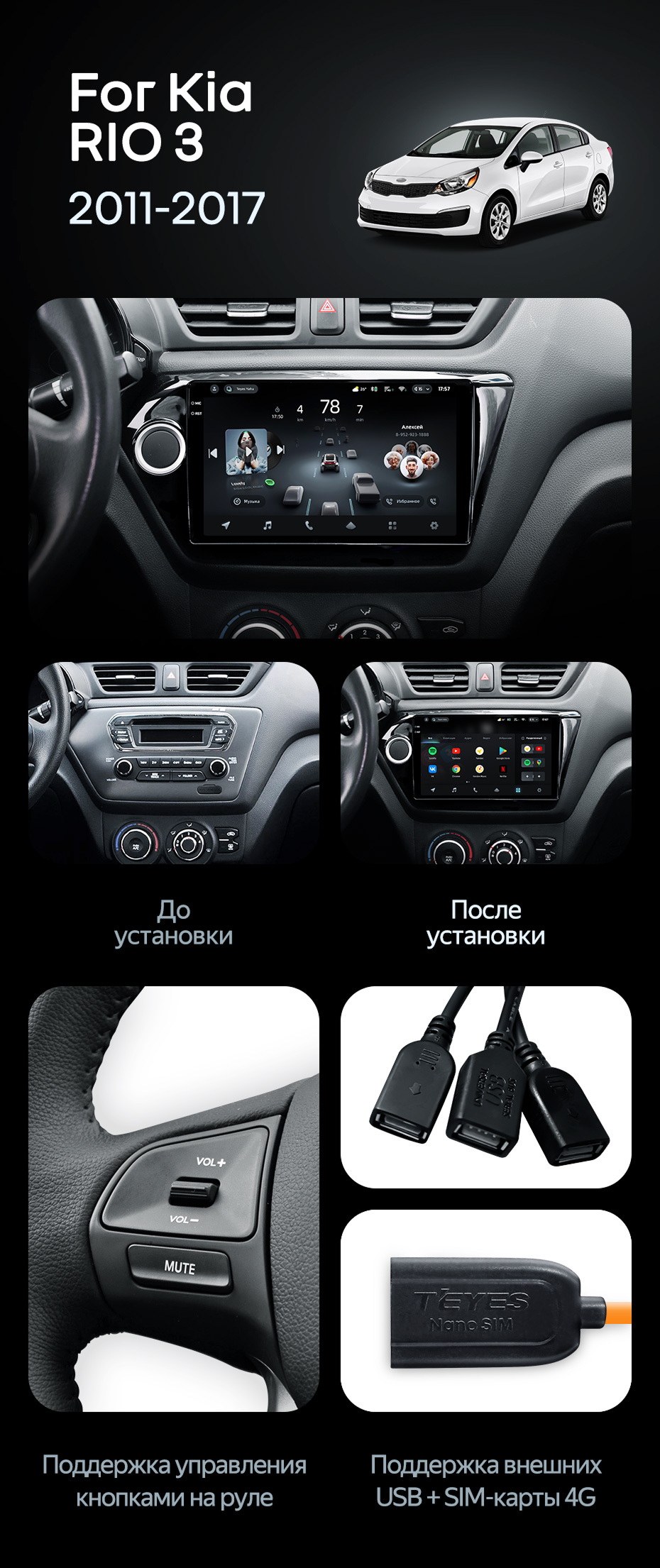 Штатная магнитола Teyes CC4 Pro 12/256 Kia Rio 3 (2011-2017) - купить всего за 67 800 руб. в интернет-магазине в Шахтах Teyes.com.ru. ✓ Самый лучший выбор мультимедиа ✓ Лучшая замена штатному ГУ ✓ Тел. +7 (800) 775-31-74