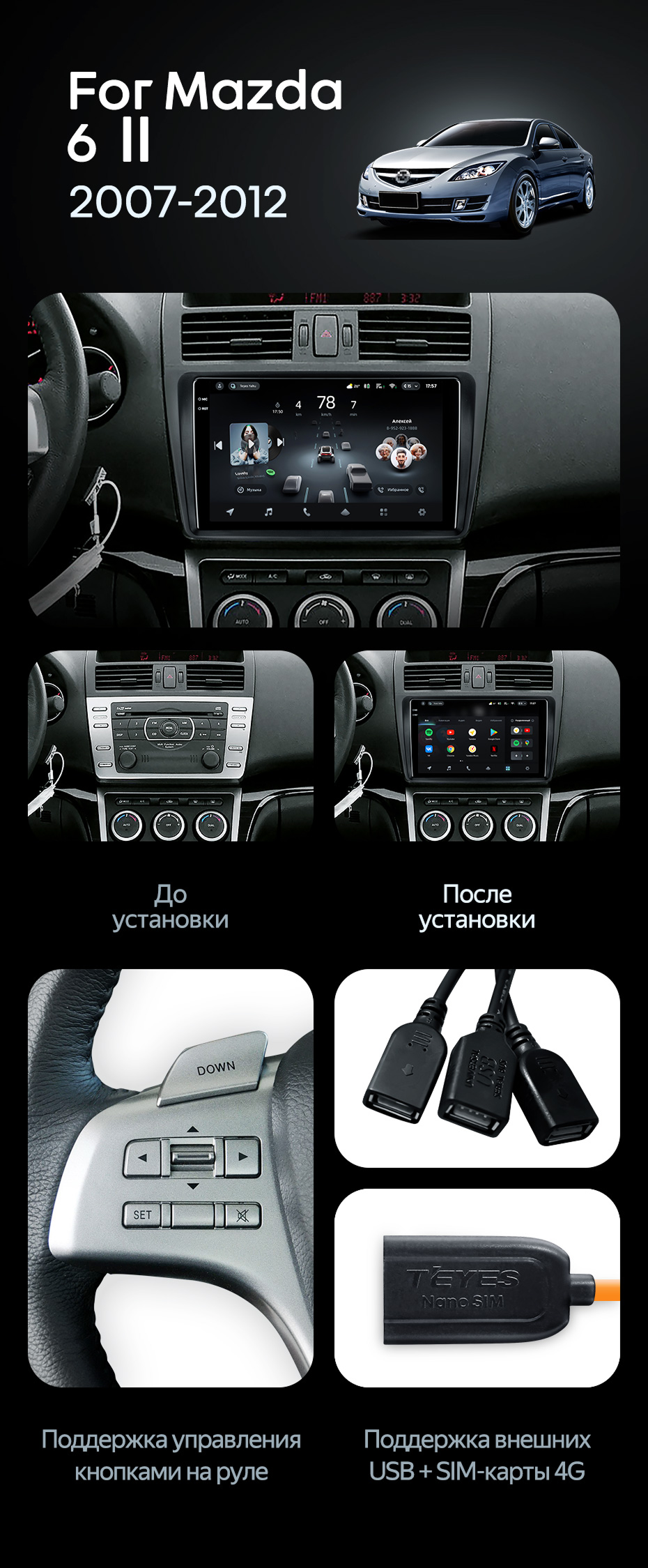 Штатная магнитола Teyes CC4 Pro 12/256 Mazda 6 2 GH (2007-2012) - купить всего за 69 670 руб. в интернет-магазине в Шахтах Teyes.com.ru. ✓ Самый лучший выбор мультимедиа ✓ Лучшая замена штатному ГУ ✓ Тел. +7 (800) 775-31-74