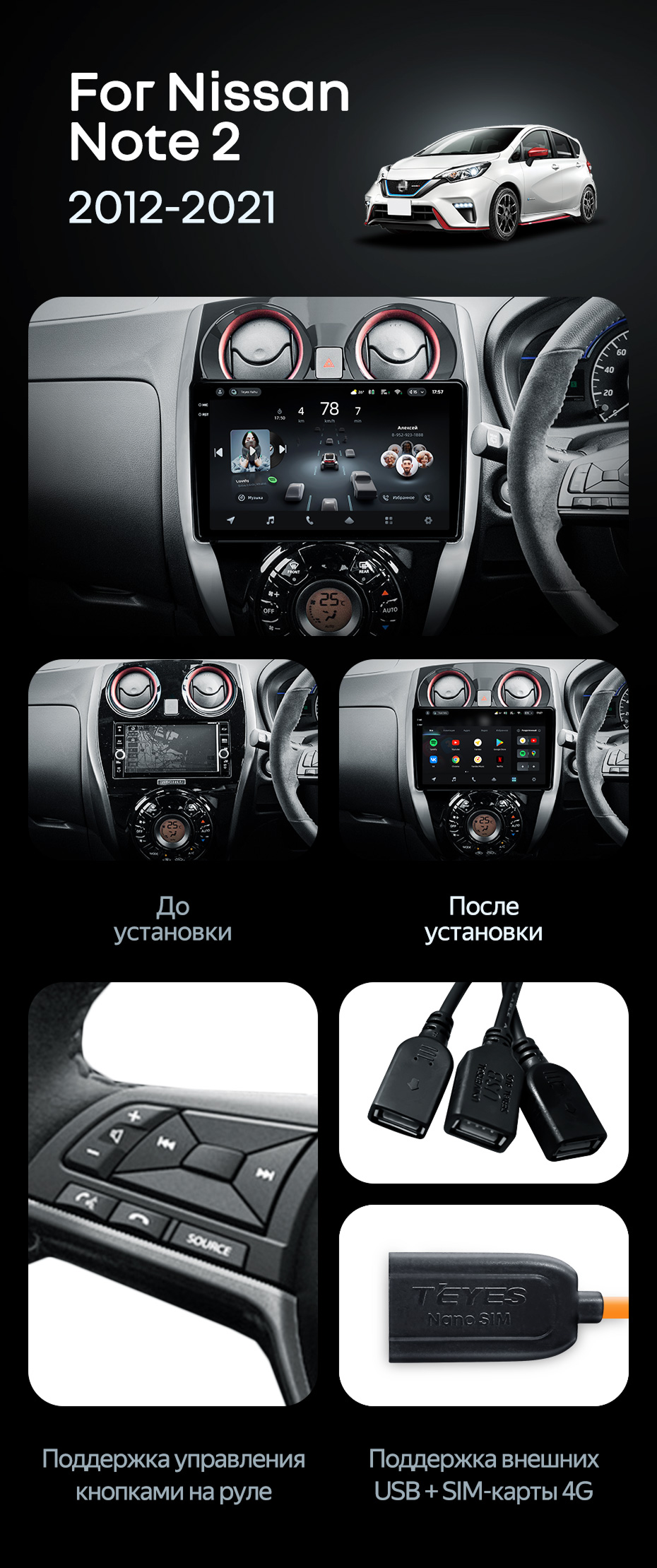 Штатная магнитола Teyes CC4 Pro 360 8/128 Nissan Note 2 E12 (2012-2021) - купить всего за 78 870 руб. в интернет-магазине в Шахтах Teyes.com.ru. ✓ Самый лучший выбор мультимедиа ✓ Лучшая замена штатному ГУ ✓ Тел. +7 (800) 775-31-74