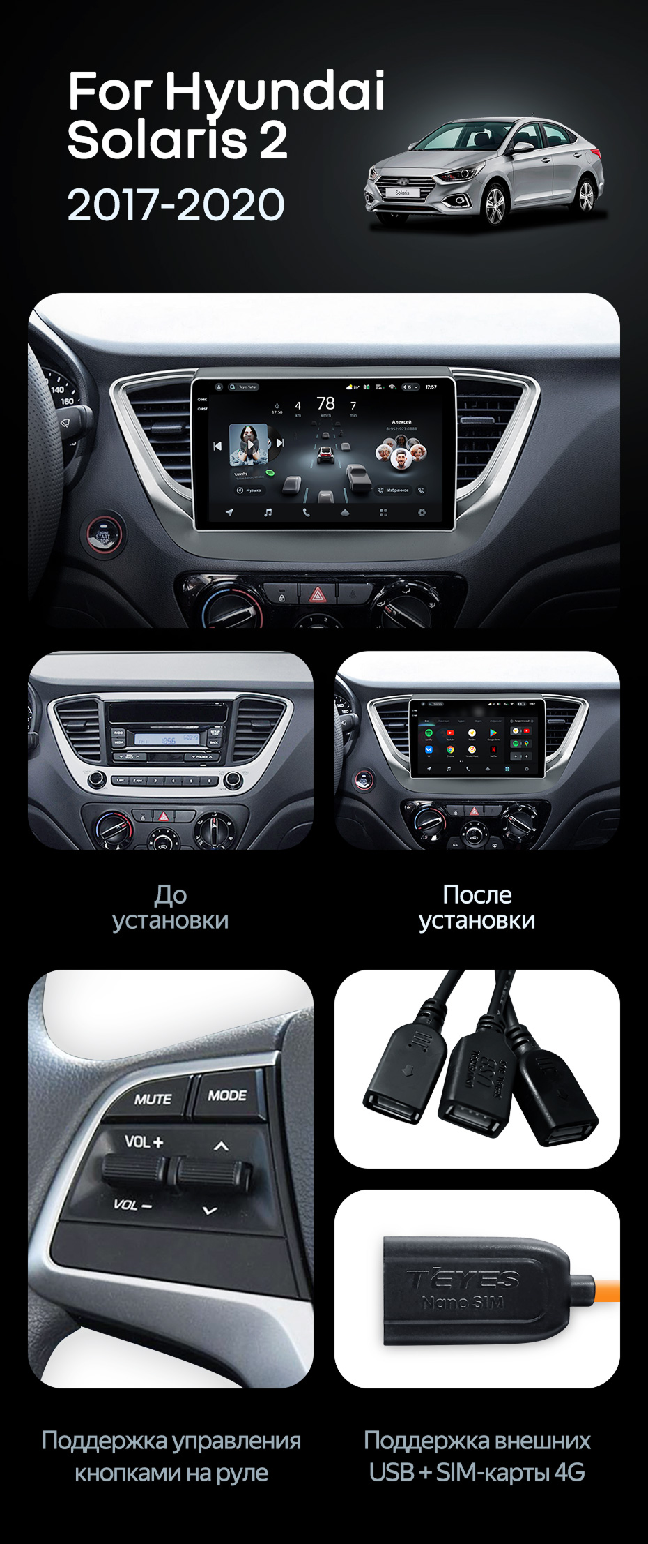 Штатная магнитола Teyes CC4 Pro 8/128 Hyundai Solaris 2 (2017-2020) F1 Тип-B - купить всего за 59 500 руб. в интернет-магазине в Шахтах Teyes.com.ru. ✓ Самый лучший выбор мультимедиа ✓ Лучшая замена штатному ГУ ✓ Тел. +7 (800) 775-31-74