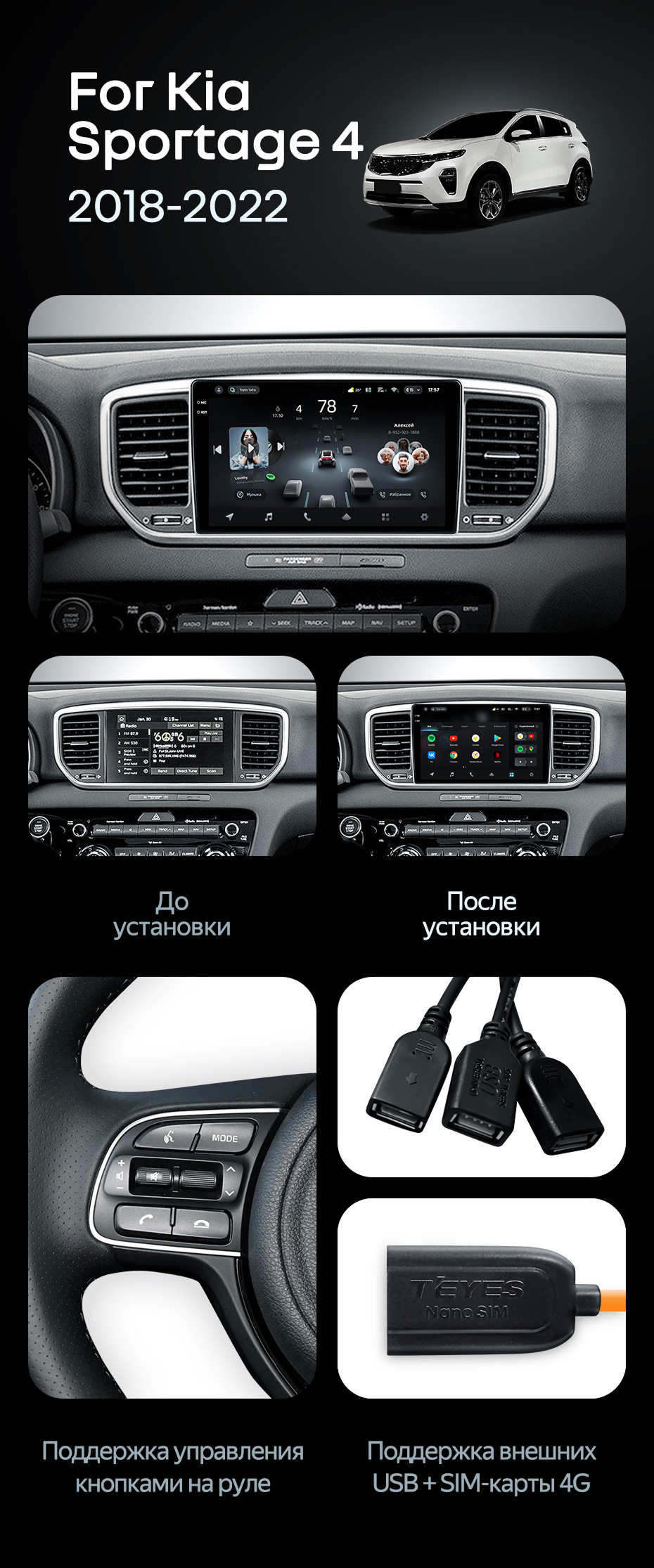 Штатная магнитола Teyes CC4 Pro 8/128 Kia Sportage 4 QL (2018-2022) Тип-A - купить всего за 57 920 руб. в интернет-магазине в Шахтах Teyes.com.ru. ✓ Самый лучший выбор мультимедиа ✓ Лучшая замена штатному ГУ ✓ Тел. +7 (800) 775-31-74