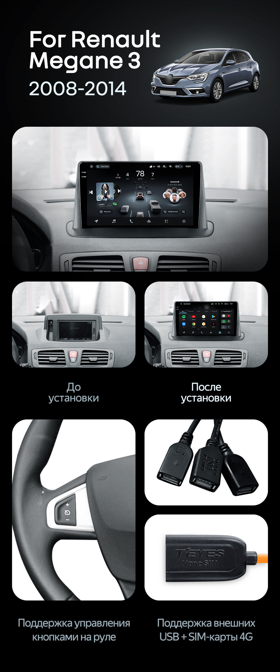 Штатная магнитола Teyes CC4 Pro 8/128 Renault Megane 3 (2008-2014) - купить всего за 59 980 руб. в интернет-магазине в Шахтах Teyes.com.ru. ✓ Самый лучший выбор мультимедиа ✓ Лучшая замена штатному ГУ ✓ Тел. +7 (800) 775-31-74