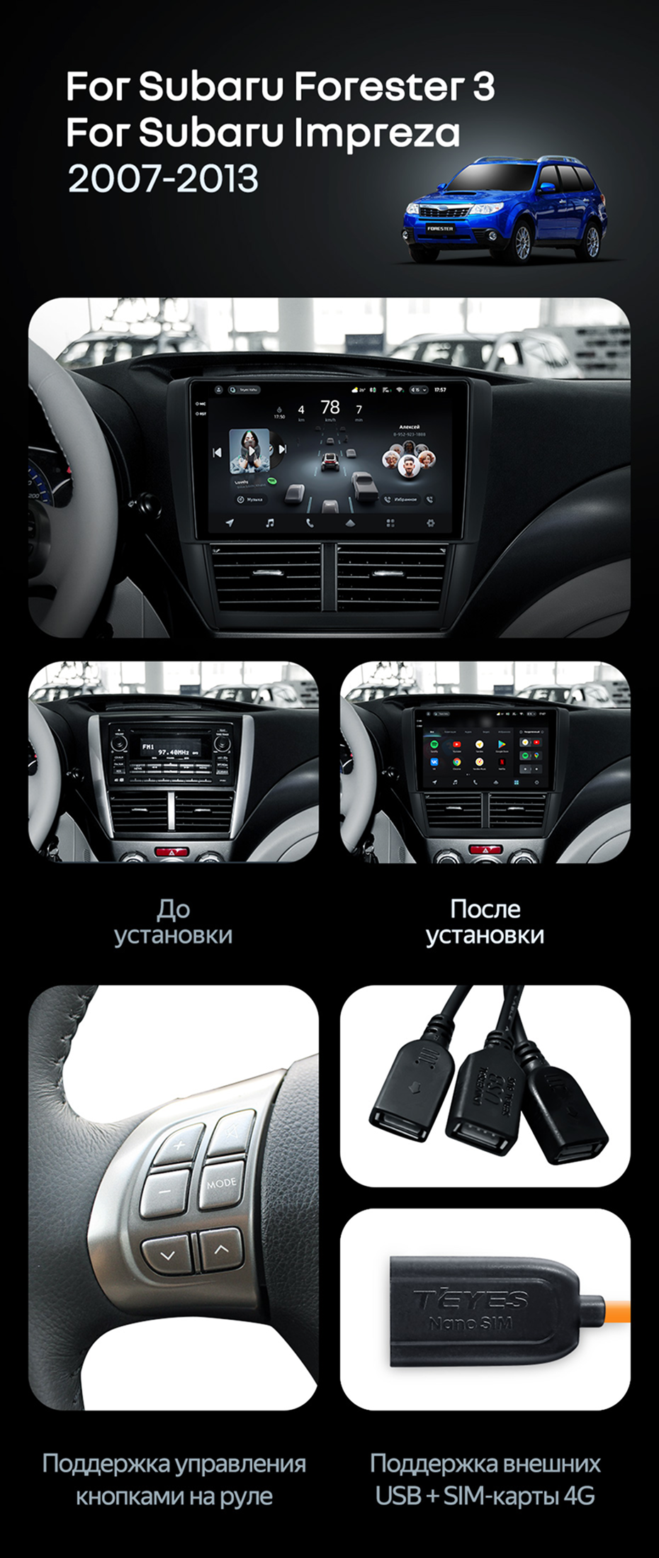 Штатная магнитола Teyes CC4 Pro 8/128 Subaru Forester 3 SH (2007-2013) - купить всего за 58 300 руб. в интернет-магазине в Шахтах Teyes.com.ru. ✓ Самый лучший выбор мультимедиа ✓ Лучшая замена штатному ГУ ✓ Тел. +7 (800) 775-31-74