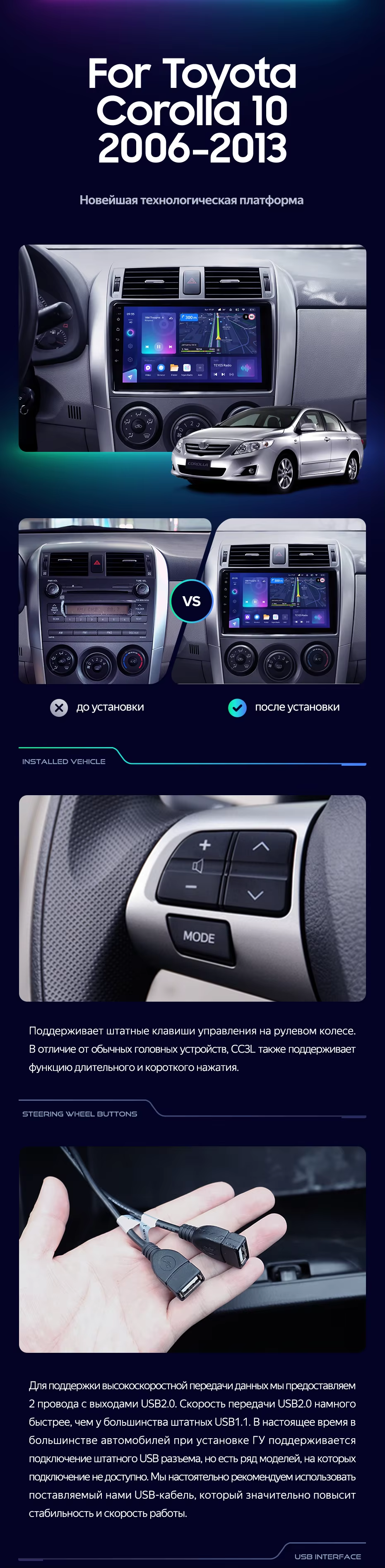 Штатная магнитола Teyes CC4 Pro 8/128 Toyota Corolla 10 E140 E150 (2006-2013) Тип-B - купить всего за 57 770 руб. в интернет-магазине в Шахтах Teyes.com.ru. ✓ Самый лучший выбор мультимедиа ✓ Лучшая замена штатному ГУ ✓ Тел. +7 (800) 775-31-74