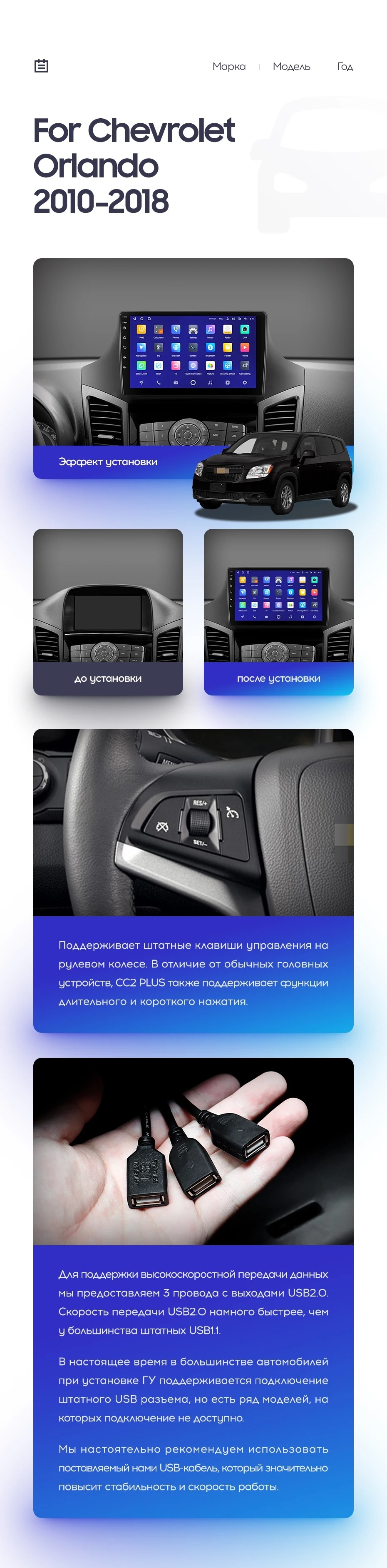 | USB | 3×USB 2.0 + USB 3.0 | Доп. аксессуары | Передняя/задняя AHD-камера, DVR-регистратор, TPMS, парковочный OBD, Type-C → HDMI |