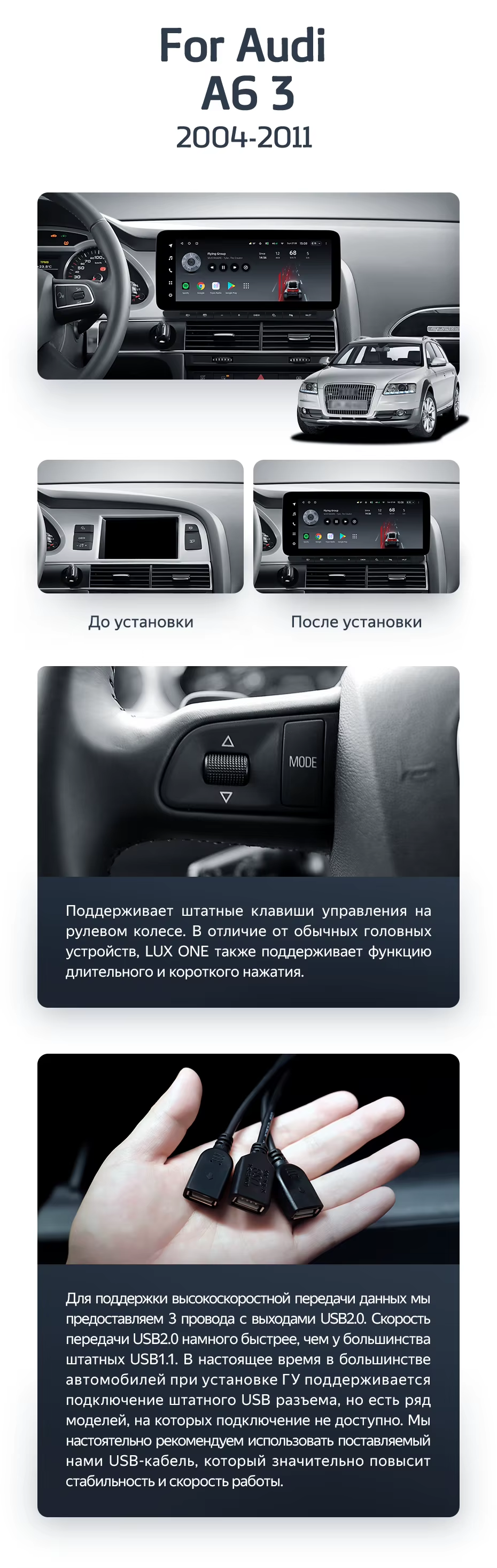 Штатная магнитола Teyes LUX ONE 4/64 Audi A6 3 C6 (2004-2011) - купить всего за 43 400 руб. в интернет-магазине в Шахтах Teyes.com.ru. ✓ Самый лучший выбор мультимедиа ✓ Лучшая замена штатному ГУ ✓ Тел. +7 (800) 775-31-74