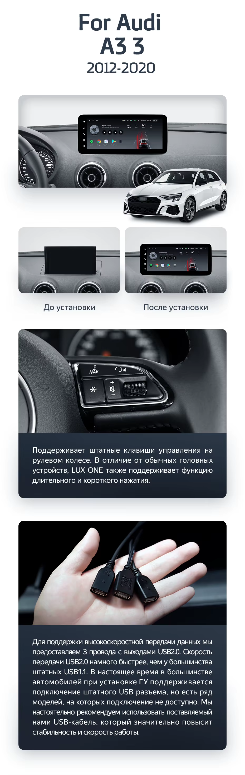 Штатная магнитола Teyes LUX ONE 6/128 Audi A3 3 8V (2012-2020) - купить всего за 45 750 руб. в интернет-магазине в Шахтах Teyes.com.ru. ✓ Самый лучший выбор мультимедиа ✓ Лучшая замена штатному ГУ ✓ Тел. +7 (800) 775-31-74